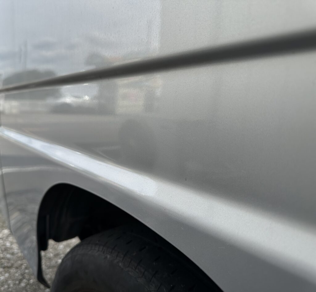 サンバー左フロントフェンダーへこみ鈑金